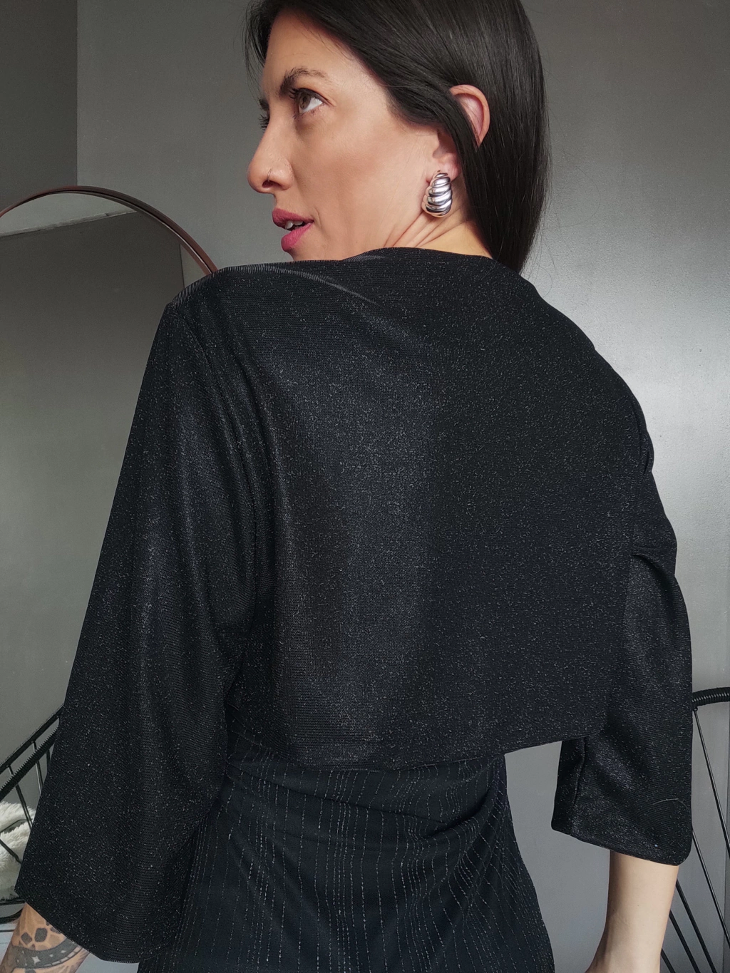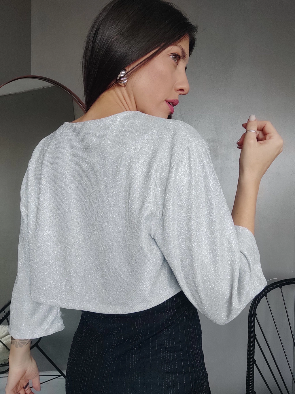 torerita de tela brillosa, manga 3/4, talle unico. tres colores. (negro, dorado, plata).